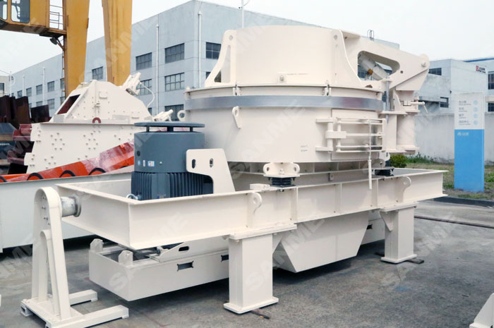 立式?jīng)_擊破碎機(制砂機)有"石打石"和"石打鐵"二種型式,"石打石"型用于磨蝕性強的物料加工;"石打鐵"型用于磨蝕性不強的物料加工,"石打鐵"型比"石打石"型成砂率高 10-20% 。
