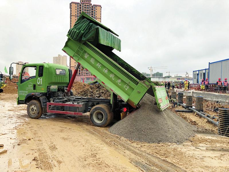 自治區(qū)人民醫(yī)院邕武醫(yī)院擴(kuò)建項(xiàng)目使用建筑垃圾再生骨料。(鄒毅 攝)